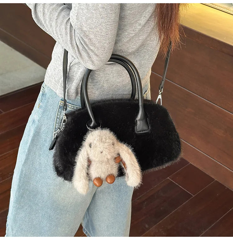 Faux Fur Shoulder Crossbody Bag Plush Woman Handbag Winter Fashion Pillow