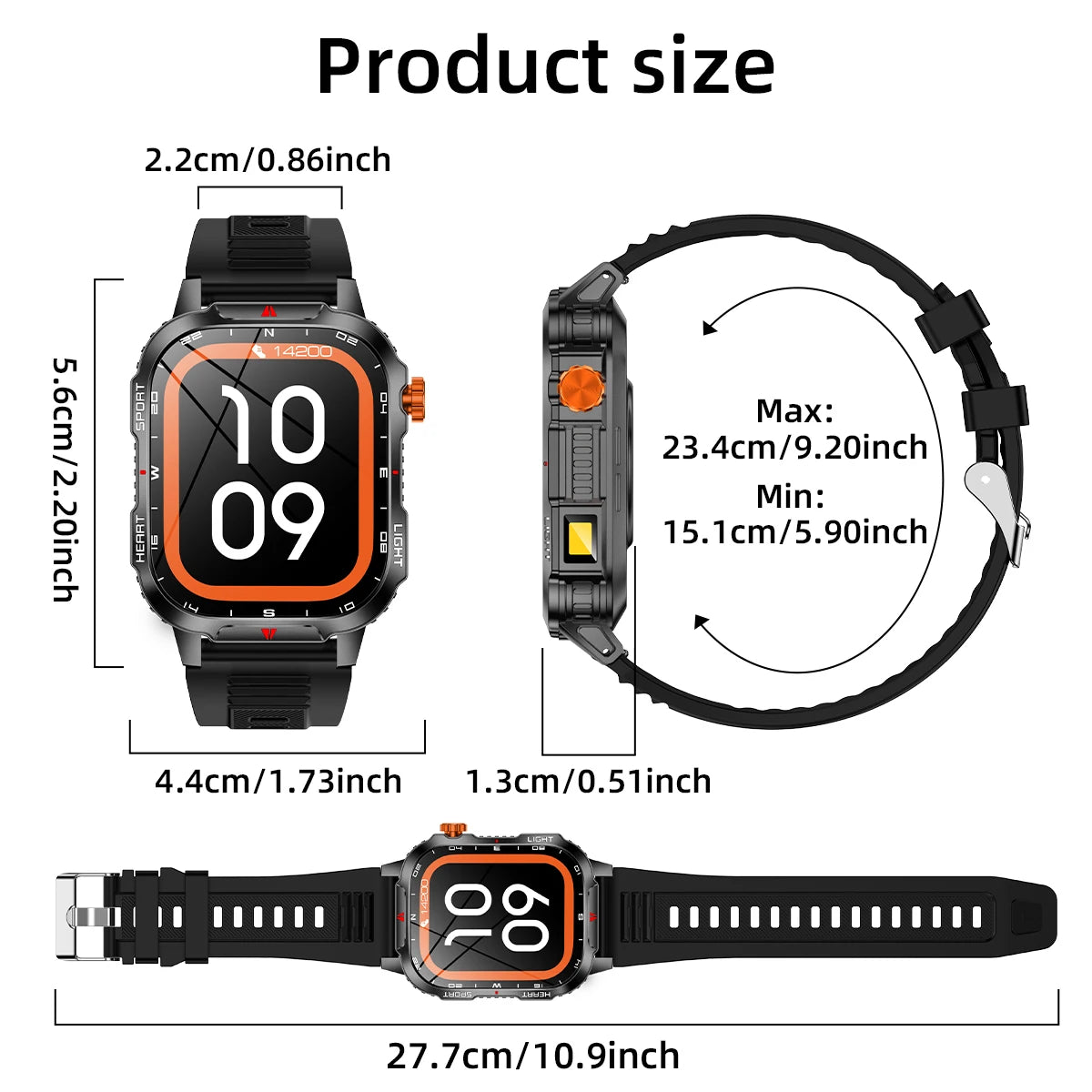 New Smart Watch Waterproof 2.01-inch Screen Flashlight Compass 1100mAh